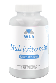 WLS Multivitamin FOREVER YOUNG ist eine moderne Multi-Formel, die klassische Vitamine und Mineralstoffe mit hochwertigen Anti-Aging-Aktivstoffen kombiniert. Die Rezeptur vereint Antioxidantien, Pflanzenextrakte, bioaktive B-Vitamine, Kollagenpeptide sowie Q10, PQQ, OPC, Resveratrol und NAC – ideal für alle, die Vitalität, Zellschutz und ein jugendliches Lebensgefühl unterstützen möchten.