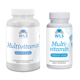 WLS Multivitamin FOREVER YOUNG wurde entwickelt für Erwachsene, die ihren Körper täglich umfassend versorgen möchten – mit Vitaminen, Mineralstoffen und modernen Mikronährstoffen, die gezielt auf Vitalität, Zellschutz, antioxidative Kapazität und ein aktives Lebensgefühl abzielen. Die Formel kombiniert klassische Mikronährstoffe mit hochwertigen Pflanzenstoffen, bioaktiven B-Vitaminen, Kollagenpeptiden sowie Resveratrol, OPC, Curcumin, NAC, PQQ und Coenzym Q10.