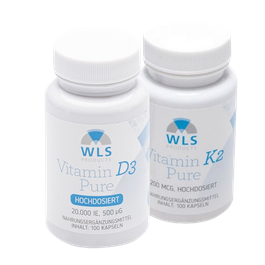 Als Erhaltungsdosierung nimmt man häufig unsere Kombikapsel WLS Vitamin D3+K2, Dosierung: 3.000, 5.000 oder 10.000 IE + K2 (MK7) 200 mcg.